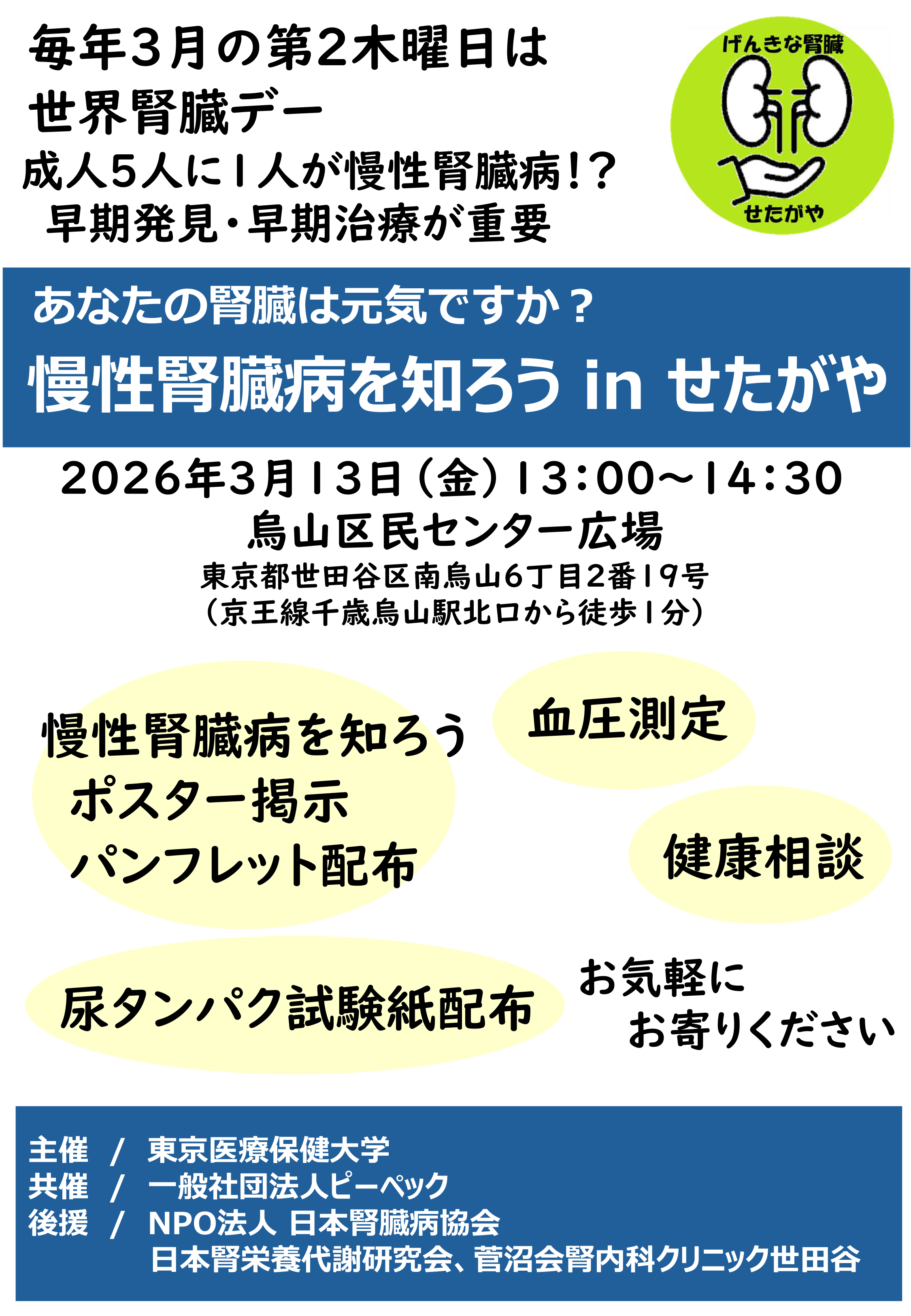 あなたの腎臓は元気ですか?「慢性腎臓病を知ろう in せたがや」