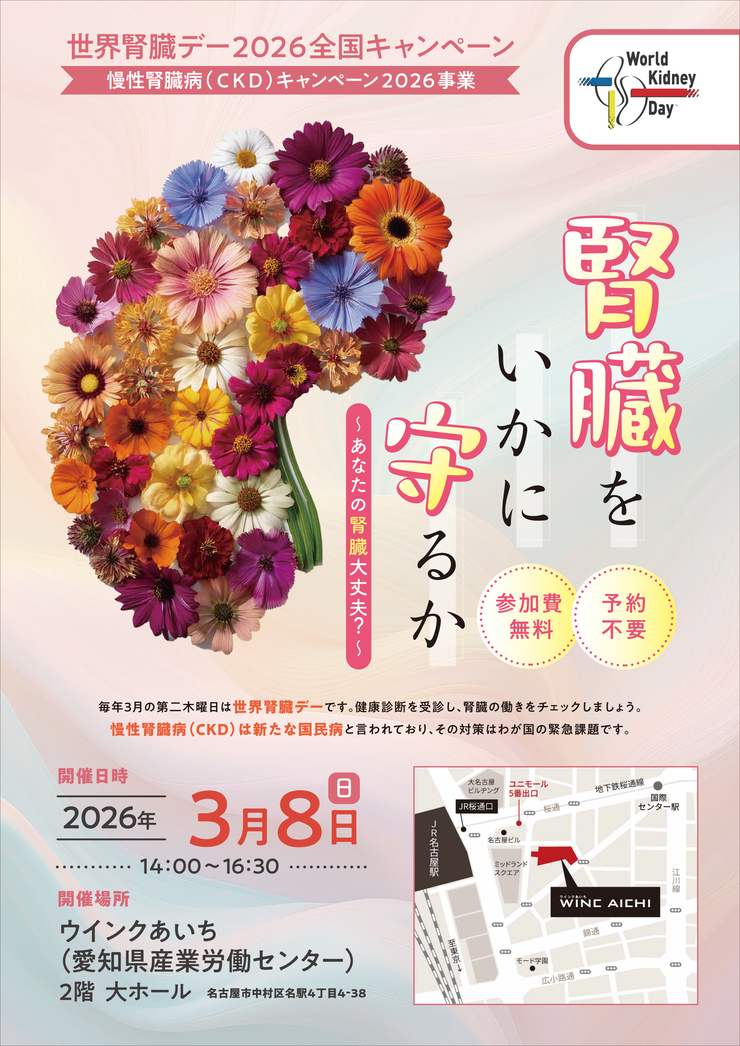 名古屋市、愛知県医師会、名古屋市医師会、愛知県薬剤師会、愛知県栄養士会、愛知県市町村保健師協議会、愛知県腎臓病協議会、愛知県看護協会、日本腎臓病協会